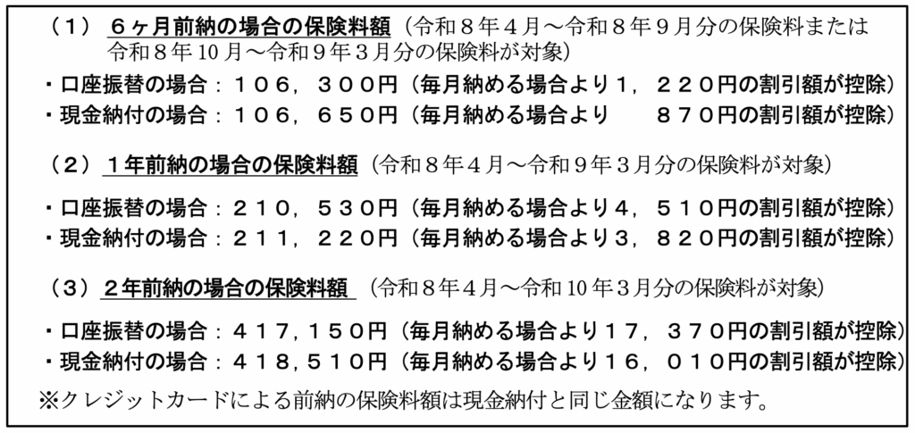 令和9年度の国民年金保険料額が公表されたことに伴い、令和8年度における国民年金保険料の前納額が発表されました。